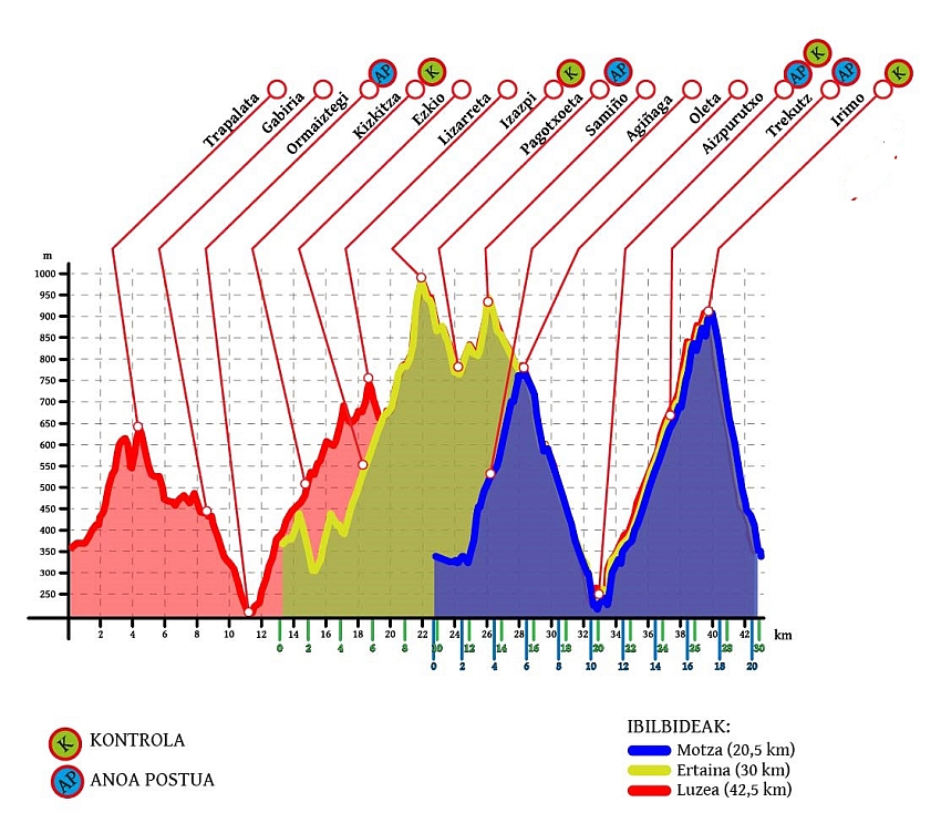 Ibilbide luzea: 42.5 Km / 2.500 m desnibela / Irteera ordua: 6:00 am